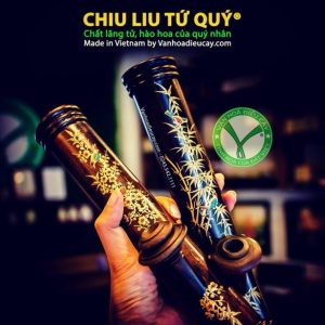 Chiu liu tứ quý®: Gỗ mun đen chạm nổi hoạ tiết vàng, 30cm, chống đổ nước