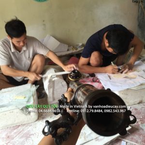 -Với những người thợ có đôi bàn tay vàng, chúng tôi đã biến mặt cong của chiếc điếu trở thành những bức hoạ đầy nghệ thuật, niềm tự hào dân tộc Việt Nam!