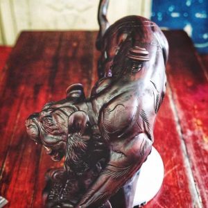 Điếu tạo hình mãnh hổ vờn mồi, có giá trị phong thuỷ để bàn, ngăn ngừa và đe doạ tiểu nhân nhưng đồng thời cũng thuần hoá, thu phục quân tử phò tá. Đó như là một thuật Đắc- Nhân- Tâm vậy!