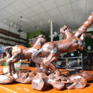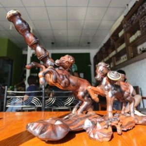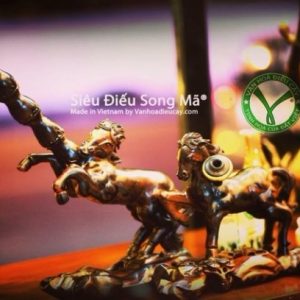 Sản phẩm được đục nguyên khối từ gỗ mun, tạo dáng 2 con ngựa đang phi về phía trước, miệng hút bọc vòng vàng mạ 18k đính kim cương nhân tạo có logo của Văn Hoá Điếu Cày®. Thân ống hút được cách điệu hình thân tre gợi nhớ truyền thuyết về chiến mã trong truyện Thánh Gióng đại phá giặc Ân.
