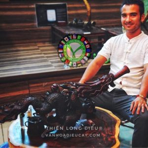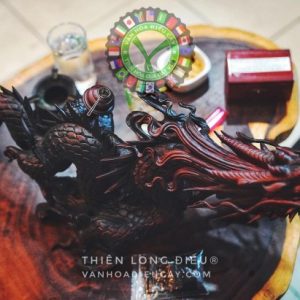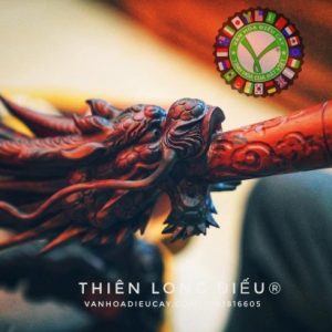Thiên Long Điếu® Là một siêu điếu đục thủ công nguyên khối từ gỗ trắc đỏ đen. Tác phẩm có độ tỉ mỉ, chi tiết cực kỳ sắc sảo.