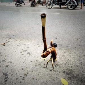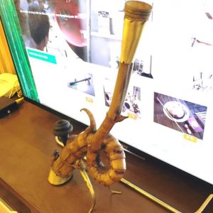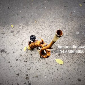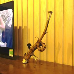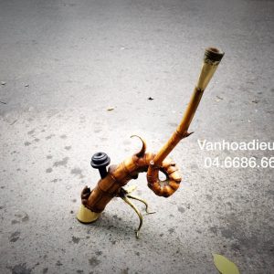 Siêu phẩm tre dị ngọn 19 đốt, lành tít, kín kẽ. Chân đồng nguyên khối uốn nghệ thuật. Tuổi đời 5 năm, sản phẩm được bọc đồng kín kẽ, khói đượm và phê sâu, tiếng nỏ kêu to ngựa hý đại ngàn.
